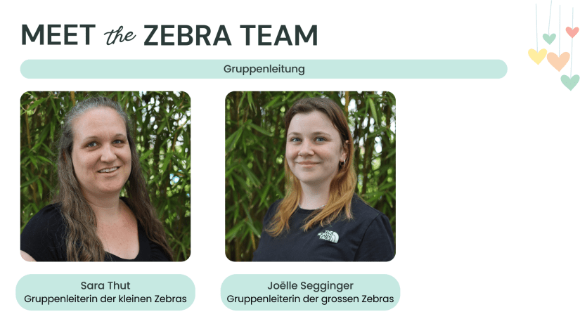 Das Team der Kita Zebra setzt sich aus neun Personen zusammen, die sich in verschiedenen Pensen um die herzliche Kinderbetreuung von Montag bis Freitag kümmern.